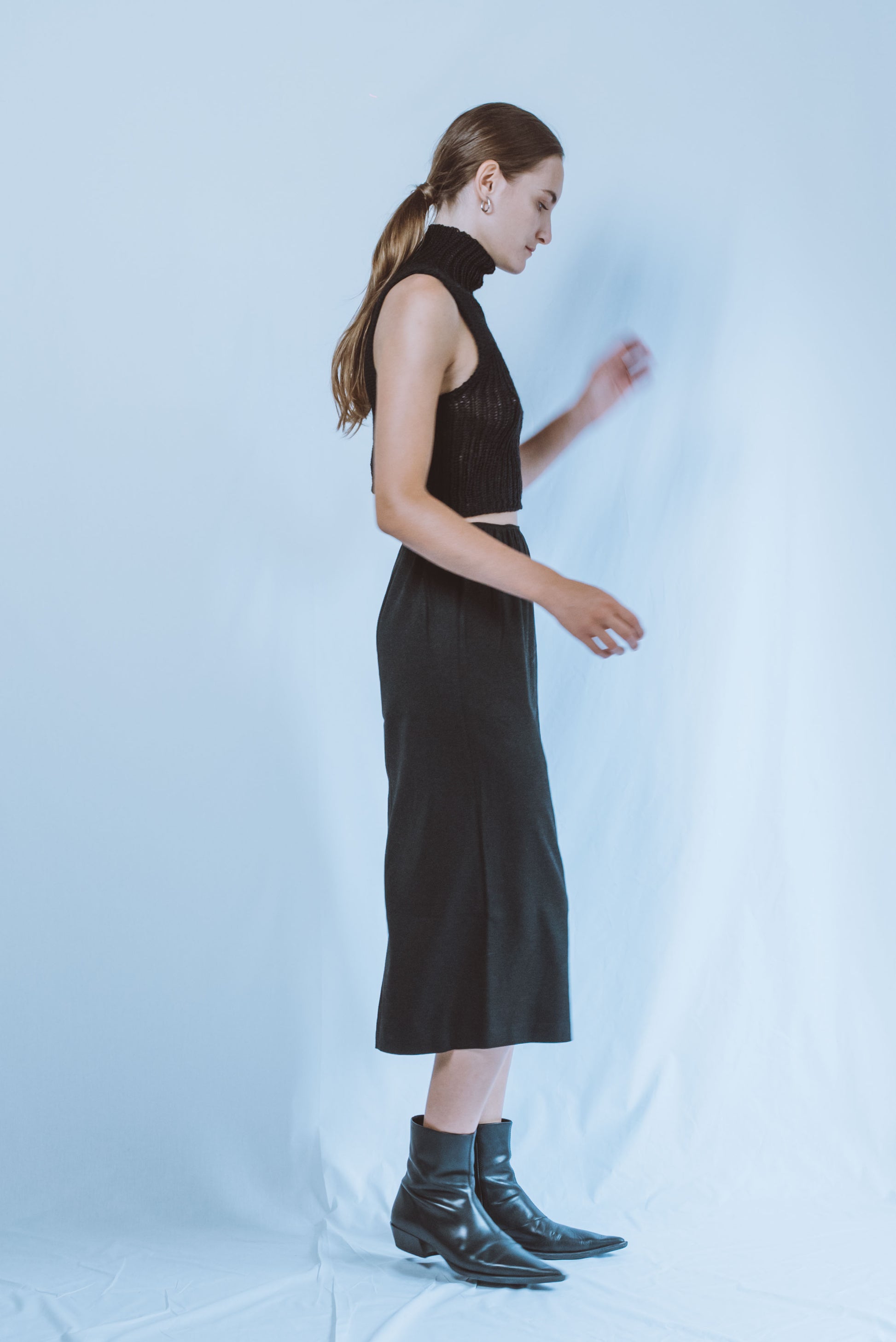 The integrated neck design optimizes tension distribution along the neckline and upper torso, enhancing fit and support. Each garment is handmade in Palermo, Sicily, using precise seam calibration and artisanal techniques to preserve fiber cohesion and long-term drape.