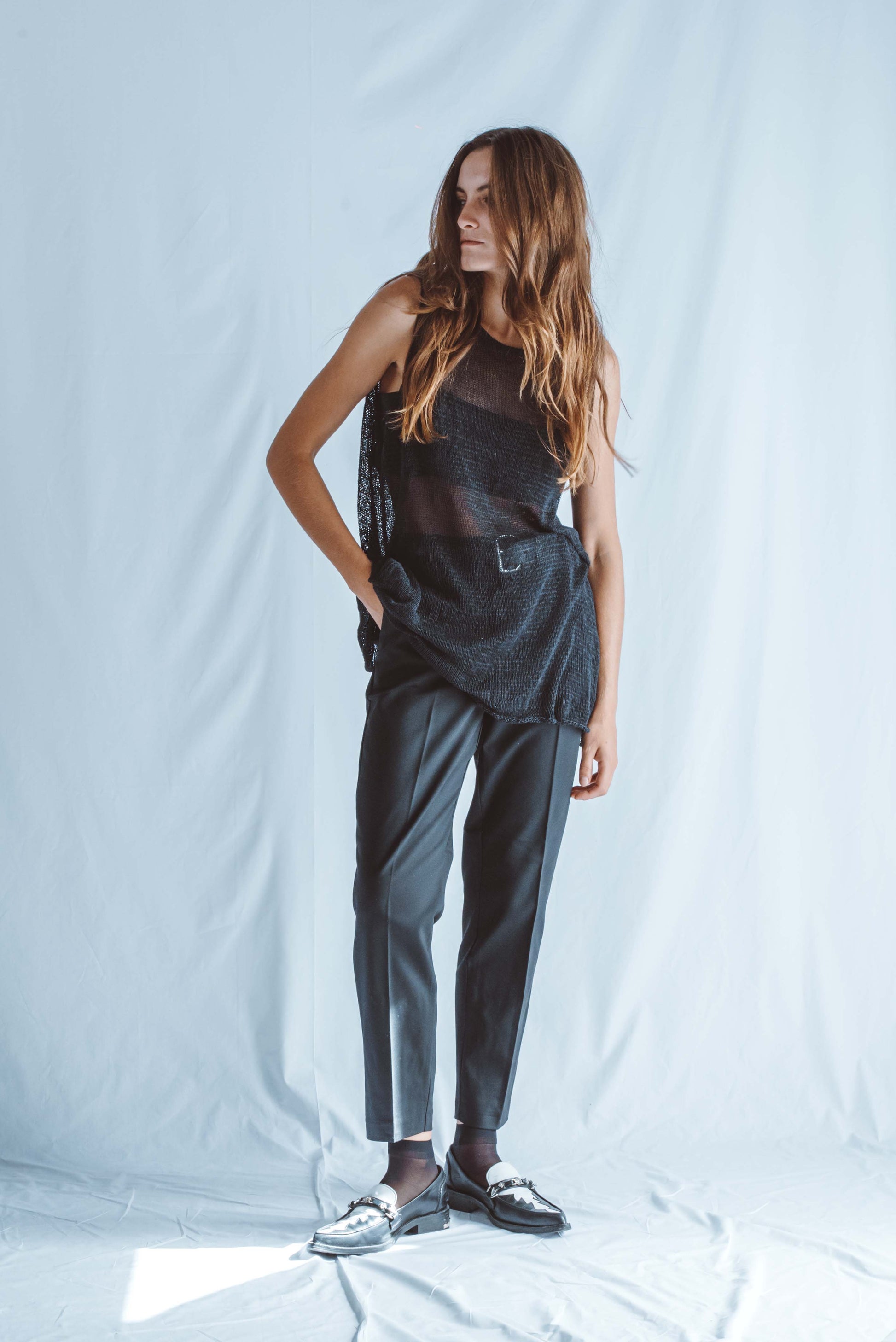 This loose-fitting muscle top merges biomaterial performance with precision tailoring. Constructed from 100% Eri silk, a naturally thermostatic and hypoallergenic protein fiber, it ensures optimal moisture regulation and adaptive comfort across variable temperatures.